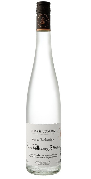 En provenance de la vallée du Rhône, du pays Basque ou du Valais en Suisse, la poire arrive à maturité en août / septembre. C’est un fruit jaune-verdâtre à chair blanche fine et fondante, très juteuse et parfumée au goût acidulé. C'est un fruit à pépins mais qui se distille comme les fruits à noyaux après fermentation. Compte tenu de la fragilité du fruit, le choix de la matière première est primordial : les fruits doivent être mûrs et sains, non abîmés. Il est par ailleurs très important de déterminer précisément le moment optimal de la fermentation. L'eau-de-vie obtenue est élégante et parfumée aux arômes caractéristiques du fruit. Cette eau-de-vie exprime la richesse de sa terre d'origine et restitue les saveurs délicates et nuancées du fruit. Eau-de-vie très aromatique et très parfumée, aux arômes caractéristiques du fruit, son bouquet est puissant et moelleux.